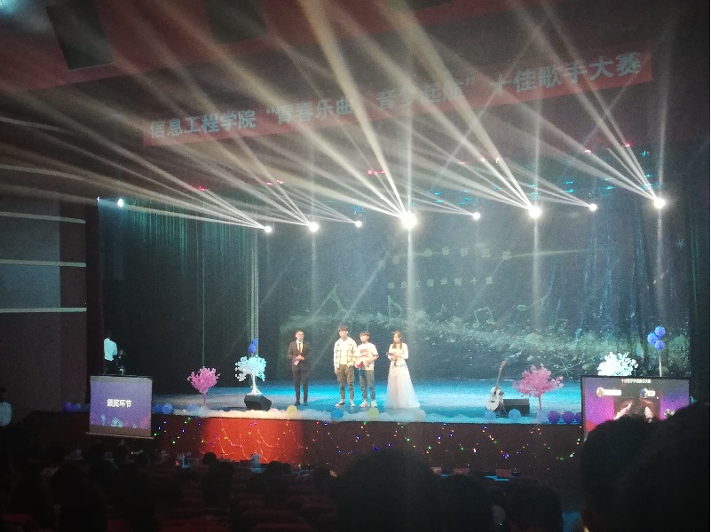 经过层层选拔,12名成功晋级的选手分为了六组,两两PK站上了决赛的舞台。比赛的场面异常火爆,选手们怀揣着激情与梦想,用他们美妙的歌声感染着观众们的心灵。由王炜文、邵一森同学带来的一首《空白格》拉开了比赛的序幕。优美的旋律,迷人的嗓音让现场观众仿佛置身于寂静的夜晚,感受着那份宁静。经过激烈角逐之后,王炜文同学的演唱获得季军,吴方旭同学获得亚军,郑林哲同学获得了本次大赛的冠军。
