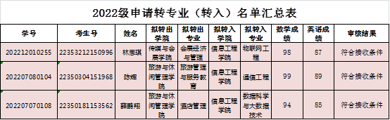 关于2022级本科学生转专业(转入)名单公示